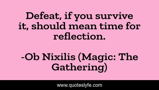 This page presents the quote "Defeat, if you survive it, should mean time for reflection.". Author of this quote is Ob Nixilis (Magic: The Gathering). This quote is about life, reflection, survival, life-lessons, defeat, mtg,.