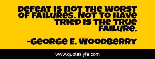 This page presents the quote "Defeat is not the worst of failures. Not to have tried is the true failure.". Author of this quote is George E. Woodberry. This quote is about failure, defeat, trying, inspirational, enthusiasm,.