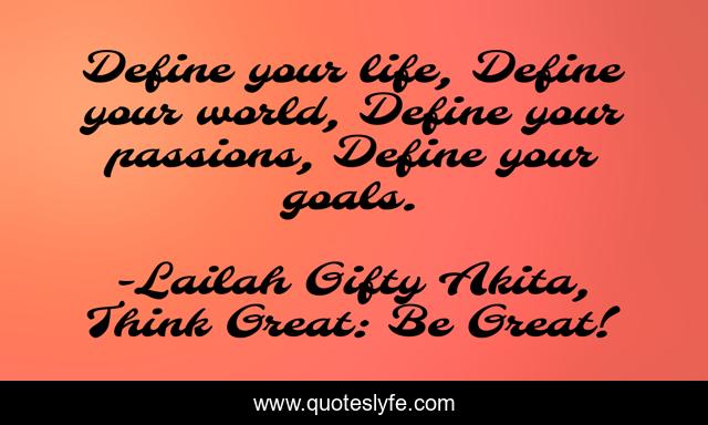 "Lailah Gifty Akita, Think Great: Be Great! Quotes." Quoteslyfe.com, 2025. Sat. 06 Dec. 2025. <https://www.quoteslyfe.com/quote/Define-your-life-Define-your-world-Define-219106>.