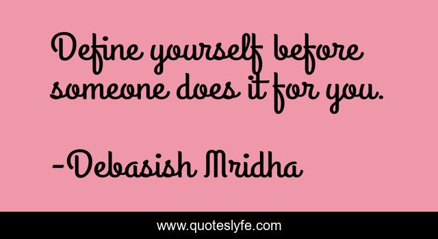 This page presents the quote "Define yourself before someone does it for you.". Author of this quote is Debasish Mridha. This quote is about life, love, knowledge, inspirational, intelligence, philosophy, wisdom, quotes, affection,.