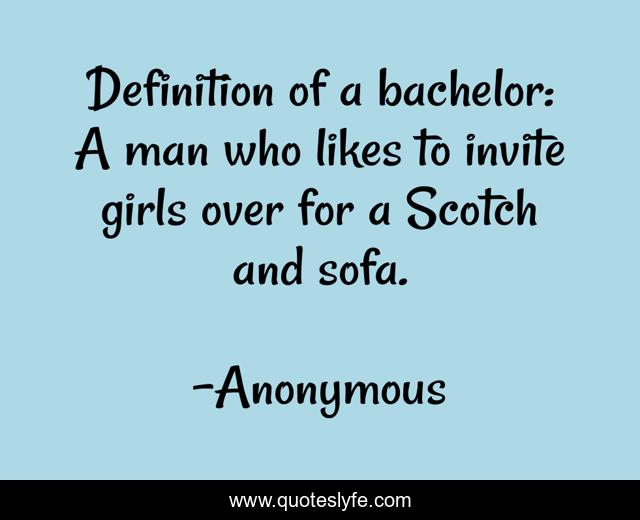 This page presents the quote "Definition of a bachelor: A man who likes to invite girls over for a Scotch and sofa.". Author of this quote is Anonymous. This quote is about love, marriage, affection,.