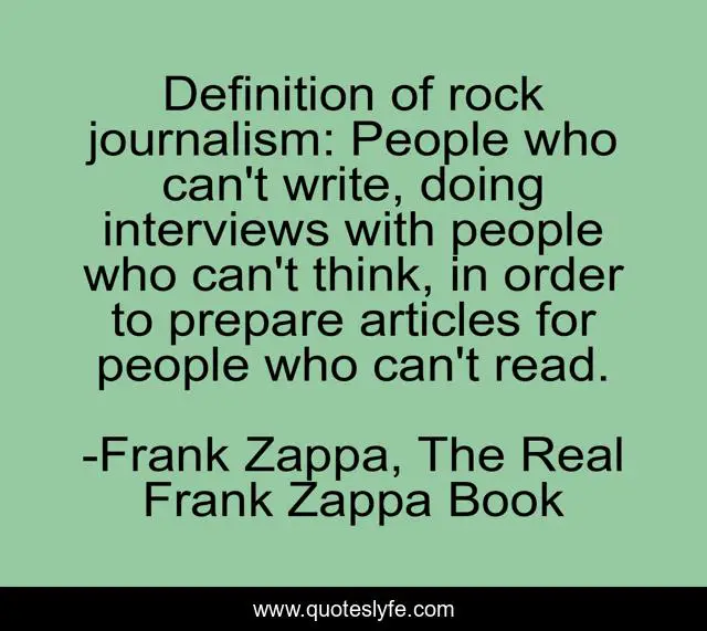 "Frank Zappa, The Real Frank Zappa Book Quotes." Quoteslyfe.com, 2025. Sun. 07 Dec. 2025. <https://www.quoteslyfe.com/quote/Definition-of-rock-journalism-People-who-can-5861>.