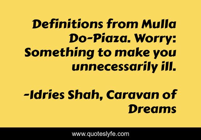 This page presents the quote "Definitions from Mulla Do-Piaza. Worry: Something to make you unnecessarily ill.". Author of this quote is Idries Shah, Caravan of Dreams. This quote is about sufism, mulla-do-piaza, sufis, psychology, wisdom,.