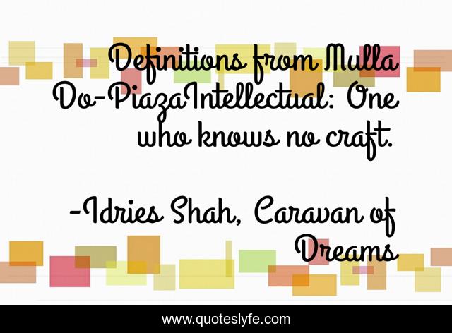 "Idries Shah, Caravan of Dreams Quotes." Quoteslyfe.com, 2025. Sat. 06 Dec. 2025. <https://www.quoteslyfe.com/quote/Definitions-from-Mulla-Do-PiazaIntellectual-One-who-87432>.