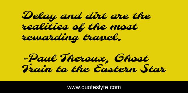 This page presents the quote "Delay and dirt are the realities of the most rewarding travel.". Author of this quote is Paul Theroux, Ghost Train to the Eastern Star. This quote is about wanderlust, travel,.