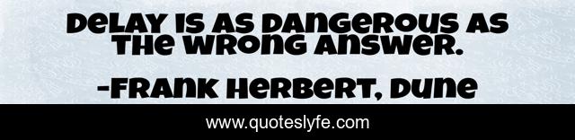 "Frank Herbert, Dune Quotes." Quoteslyfe.com, 2025. Fri. 05 Dec. 2025. <https://www.quoteslyfe.com/quote/Delay-is-as-dangerous-as-the-wrong-64796>.