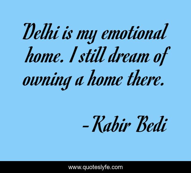 This page presents the quote "Delhi is my emotional home. I still dream of owning a home there.". Author of this quote is Kabir Bedi. This quote is about emotional, delhi, dream,.