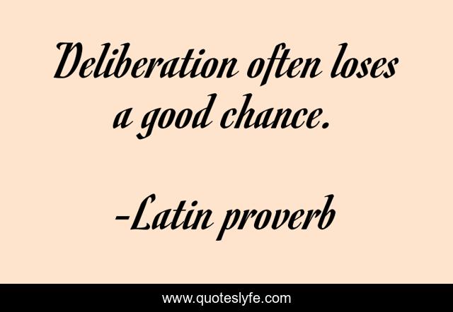"Latin proverb Quotes." Quoteslyfe.com, 2025. Fri. 05 Dec. 2025. <https://www.quoteslyfe.com/quote/Deliberation-often-loses-a-good-chance-263097>.