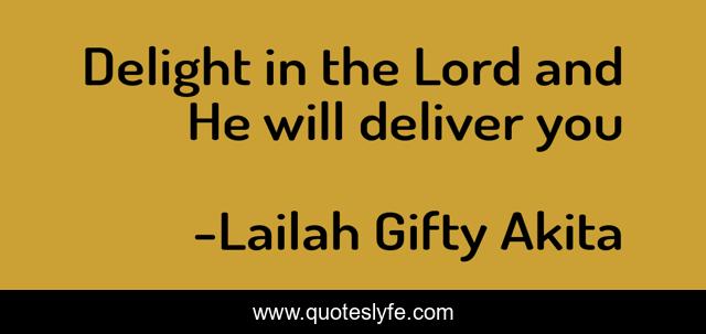 This page presents the quote "Delight in the Lord and He will deliver you". Author of this quote is Lailah Gifty Akita. This quote is about religion, christian-life, prayer-life,.