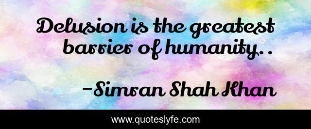 This page presents the quote "Delusion is the greatest barrier of humanity..". Author of this quote is Simran Shah Khan. This quote is about misbelief, humanity, illusion,.