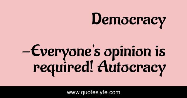 "Everyone's opinion is required! Autocracy Quotes." Quoteslyfe.com, 2025. Sat. 06 Dec. 2025. <https://www.quoteslyfe.com/quote/Democracy-134646>.