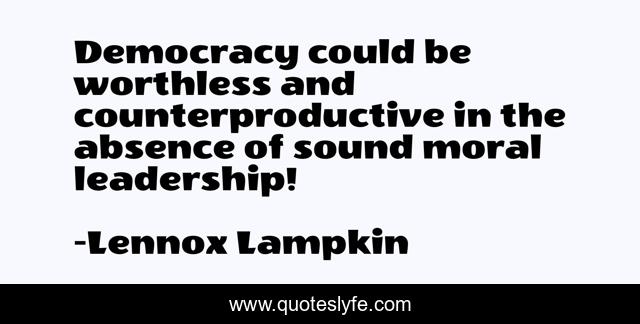 This page presents the quote "Democracy could be worthless and counterproductive in the absence of sound moral leadership!". Author of this quote is Lennox Lampkin. This quote is about politics, deomcracy, leadership, morality,.