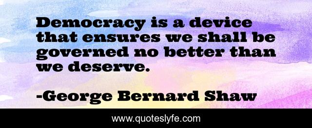 This page presents the quote "Democracy is a device that ensures we shall be governed no better than we deserve.". Author of this quote is George Bernard Shaw. .