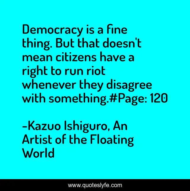 "Kazuo Ishiguro, An Artist of the Floating World Quotes." Quoteslyfe.com, 2025. Fri. 05 Dec. 2025. <https://www.quoteslyfe.com/quote/Democracy-is-a-fine-thing-But-that-200269>.