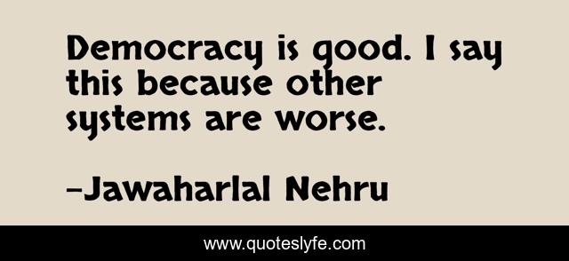 This page presents the quote "Democracy is good. I say this because other systems are worse.". Author of this quote is Jawaharlal Nehru. .