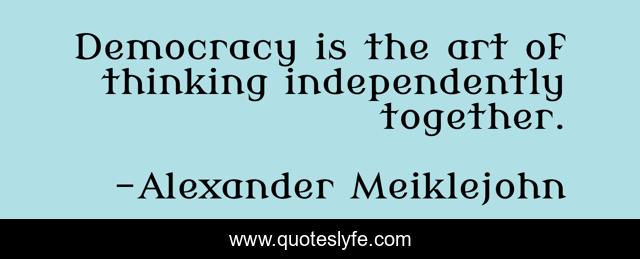 "Alexander Meiklejohn Quotes." Quoteslyfe.com, 2025. Fri. 05 Dec. 2025. <https://www.quoteslyfe.com/quote/Democracy-is-the-art-of-thinking-independently-317969>.