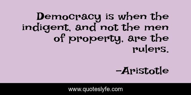 This page presents the quote "Democracy is when the indigent, and not the men of property, are the rulers.". Author of this quote is Aristotle. This quote is about property, democracy, men,.