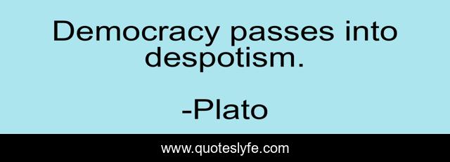 This page presents the quote "Democracy passes into despotism.". Author of this quote is Plato. This quote is about passes, despotism, democracy,.