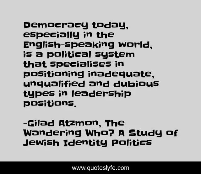 "Gilad Atzmon, The Wandering Who? A Study of Jewish Identity Politics Quotes." Quoteslyfe.com, 2025. Fri. 05 Dec. 2025. <https://www.quoteslyfe.com/quote/Democracy-today-especially-in-the-English-speaking-200253>.