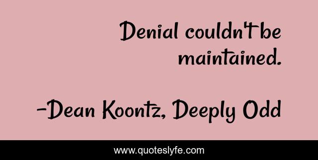 "Dean Koontz, Deeply Odd Quotes." Quoteslyfe.com, 2025. Sat. 06 Dec. 2025. <https://www.quoteslyfe.com/quote/Denial-couldn-t-be-maintained-252579>.