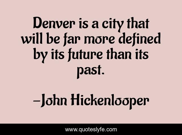 This page presents the quote "Denver is a city that will be far more defined by its future than its past.". Author of this quote is John Hickenlooper. This quote is about past, city,.