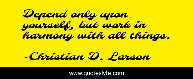 This page presents the quote "Depend only upon yourself, but work in harmony with all things.". Author of this quote is Christian D. Larson. This quote is about depend, harmony, yourself,.