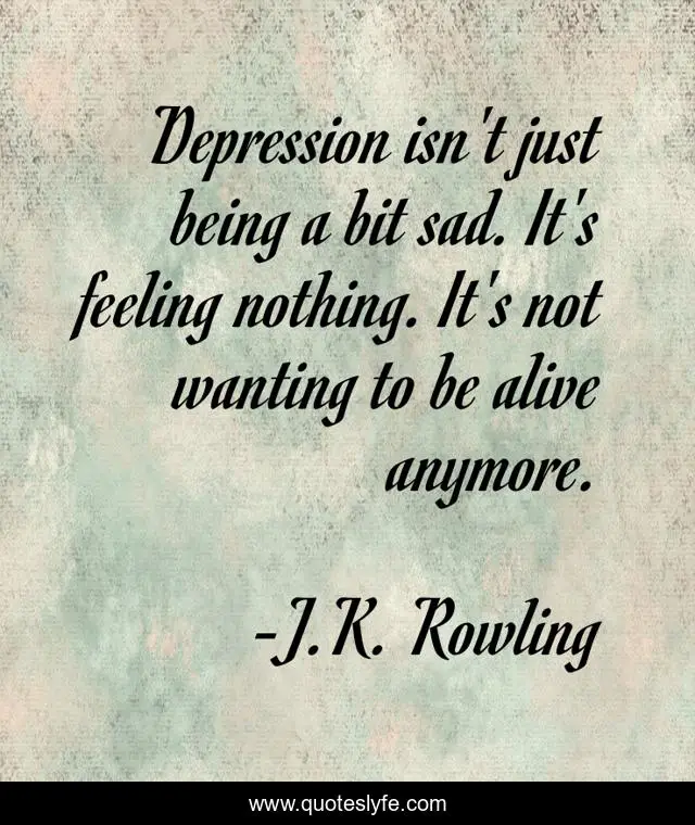 This page presents the quote "Depression isn't just being a bit sad. It's feeling nothing. It's not wanting to be alive anymore.". Author of this quote is J.K. Rowling. .