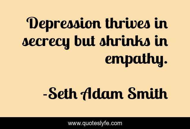 This page presents the quote "Depression thrives in secrecy but shrinks in empathy.". Author of this quote is Seth Adam Smith. This quote is about moving-forward, help, understanding-others, healing, depression-recovery, depression,.