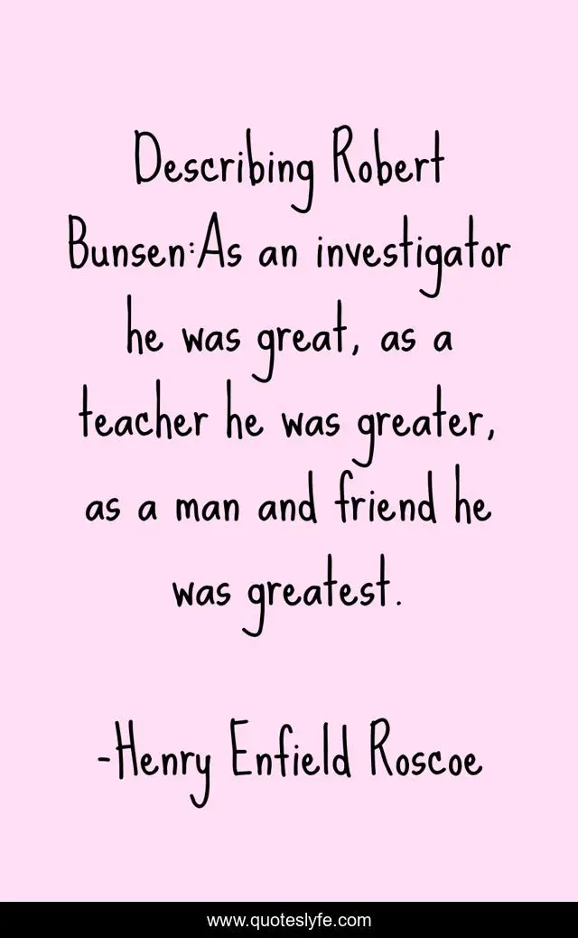"Henry Enfield Roscoe Quotes." Quoteslyfe.com, 2025. Mon. 08 Dec. 2025. <https://www.quoteslyfe.com/quote/Describing-Robert-Bunsen-As-an-investigator-he-165837>.