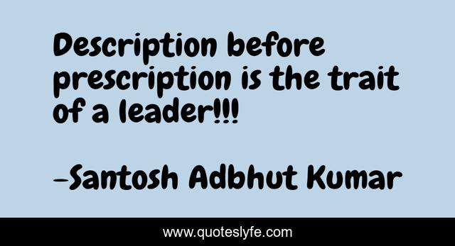 This page presents the quote "Description before prescription is the trait of a leader!!!". Author of this quote is Santosh Adbhut Kumar. This quote is about traits, leadership, leader,.