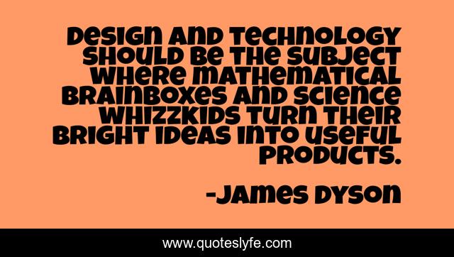 This page presents the quote "Design and technology should be the subject where mathematical brainboxes and science whizzkids turn their bright ideas into useful products.". Author of this quote is James Dyson. This quote is about technology, design, ideas,.