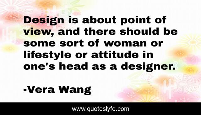 This page presents the quote "Design is about point of view, and there should be some sort of woman or lifestyle or attitude in one's head as a designer.". Author of this quote is Vera Wang. This quote is about point of view, woman, design,.