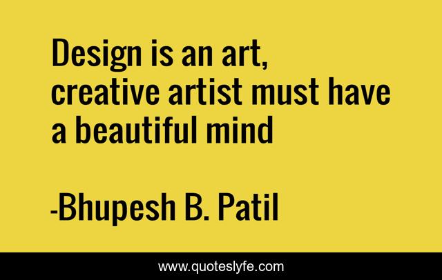 This page presents the quote "Design is an art, creative artist must have a beautiful mind". Author of this quote is Bhupesh B. Patil. This quote is about art, design, artist,.