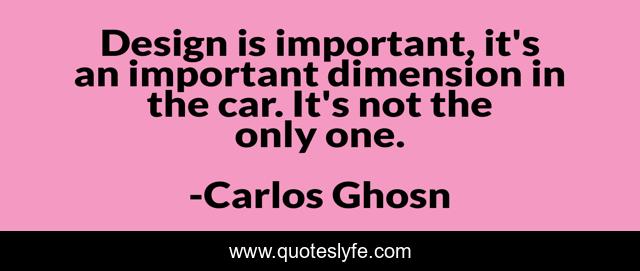 This page presents the quote "Design is important, it's an important dimension in the car. It's not the only one.". Author of this quote is Carlos Ghosn. This quote is about car, important, dimension,.