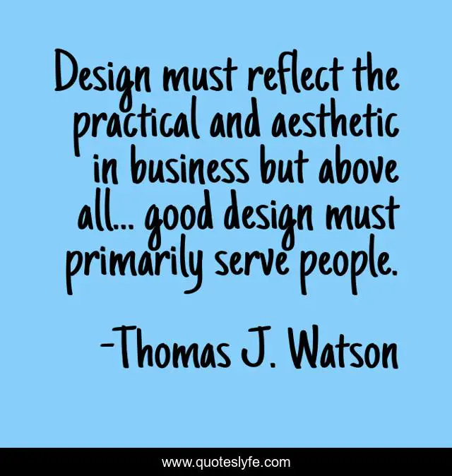 "Thomas J. Watson Quotes." Quoteslyfe.com, 2025. Fri. 05 Dec. 2025. <https://www.quoteslyfe.com/quote/Design-must-reflect-the-practical-and-aesthetic-281643>.