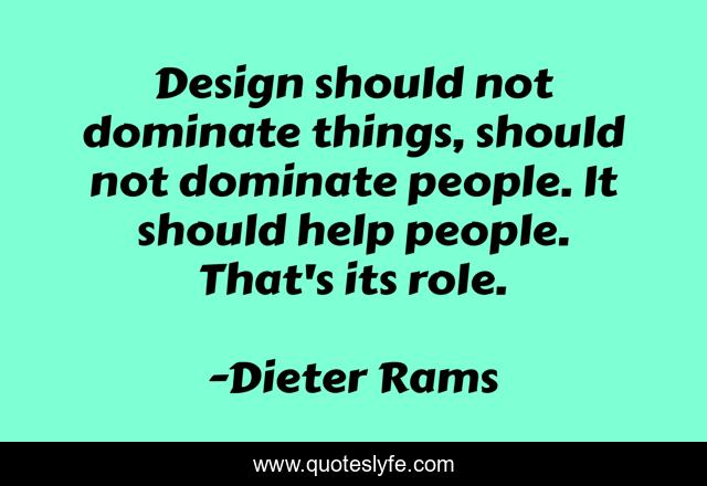 This page presents the quote "Design should not dominate things, should not dominate people. It should help people. That's its role.". Author of this quote is Dieter Rams. This quote is about role, help, people,.