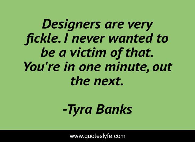 This page presents the quote "Designers are very fickle. I never wanted to be a victim of that. You're in one minute, out the next.". Author of this quote is Tyra Banks. .