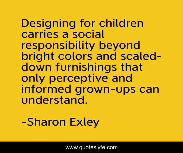 "Sharon Exley Quotes." Quoteslyfe.com, 2025. Fri. 05 Dec. 2025. <https://www.quoteslyfe.com/quote/Designing-for-children-carries-a-social-responsibility-100057>.
