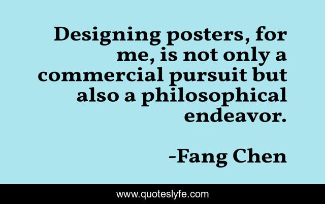 This page presents the quote "Designing posters, for me, is not only a commercial pursuit but also a philosophical endeavor.". Author of this quote is Fang Chen. This quote is about commerce, endeavor, philosophical, pursuit, posters,.
