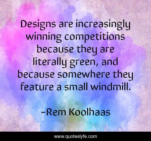 This page presents the quote "Designs are increasingly winning competitions because they are literally green, and because somewhere they feature a small windmill.". Author of this quote is Rem Koolhaas. This quote is about small, green, winning,.