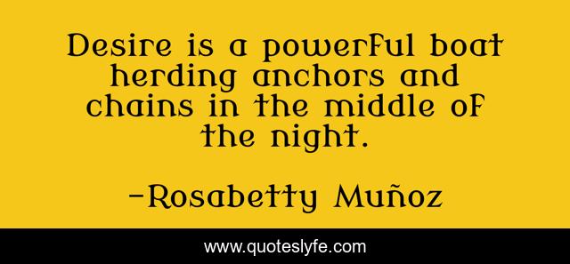 This page presents the quote "Desire is a powerful boat herding anchors and chains in the middle of the night.". Author of this quote is Rosabetty Muñoz. .
