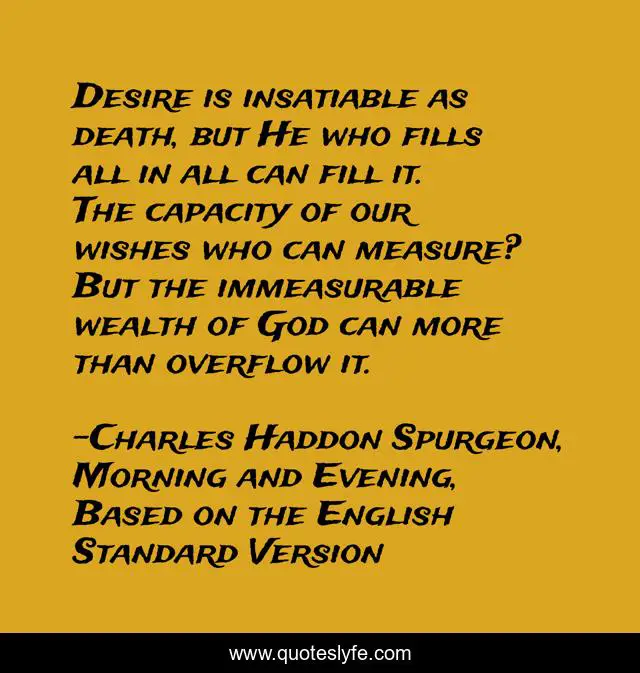 "Charles Haddon Spurgeon, Morning and Evening, Based on the English Standard Version Quotes." Quoteslyfe.com, 2025. Mon. 08 Dec. 2025. <https://www.quoteslyfe.com/quote/Desire-is-insatiable-as-death-but-He-226880>.