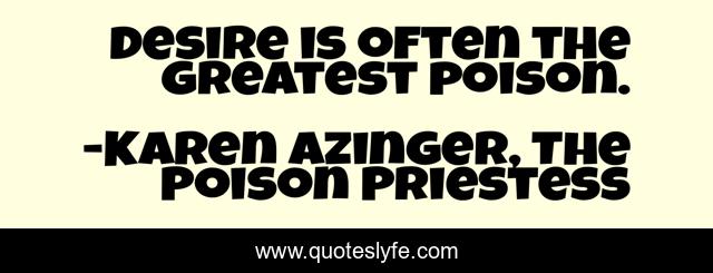 "Karen Azinger, The Poison Priestess Quotes." Quoteslyfe.com, 2025. Mon. 08 Dec. 2025. <https://www.quoteslyfe.com/quote/Desire-is-often-the-greatest-poison-134097>.