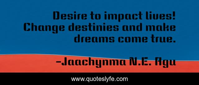 "Jaachynma N.E. Agu Quotes." Quoteslyfe.com, 2025. Tue. 09 Dec. 2025. <https://www.quoteslyfe.com/quote/Desire-to-impact-lives-Change-destinies-and-120834>.