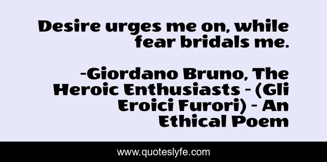 "Giordano Bruno, The Heroic Enthusiasts - (Gli Eroici Furori) - An Ethical Poem Quotes." Quoteslyfe.com, 2025. Sun. 07 Dec. 2025. <https://www.quoteslyfe.com/quote/Desire-urges-me-on-while-fear-bridals-145879>.