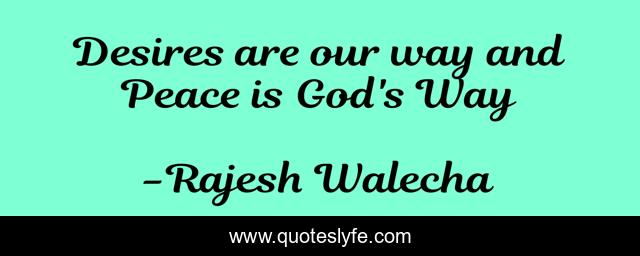 This page presents the quote "Desires are our way and Peace is God's Way". Author of this quote is Rajesh Walecha. This quote is about enthusiasm, inspirational, god-s-love, life-lessons,.