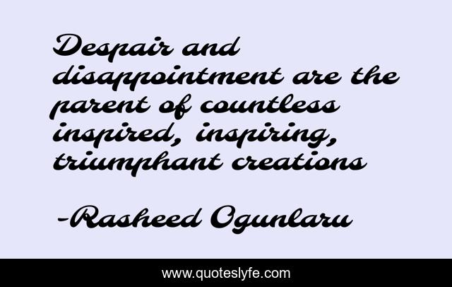 "Rasheed Ogunlaru Quotes." Quoteslyfe.com, 2025. Sat. 06 Dec. 2025. <https://www.quoteslyfe.com/quote/Despair-and-disappointment-are-the-parent-of-47642>.