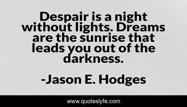 "Jason E. Hodges Quotes." Quoteslyfe.com, 2025. Mon. 08 Dec. 2025. <https://www.quoteslyfe.com/quote/Despair-is-a-night-without-lights-Dreams-233374>.