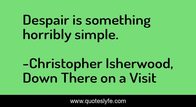 "Christopher Isherwood, Down There on a Visit Quotes." Quoteslyfe.com, 2025. Fri. 05 Dec. 2025. <https://www.quoteslyfe.com/quote/Despair-is-something-horribly-simple-207822>.