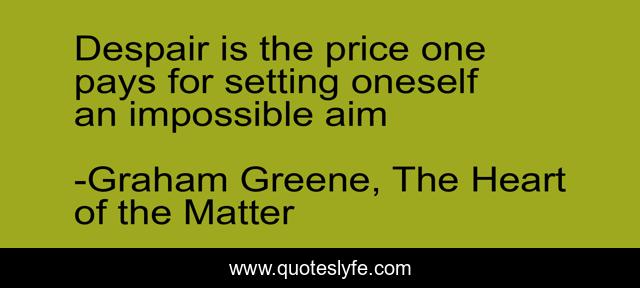 This page presents the quote "Despair is the price one pays for setting oneself an impossible aim". Author of this quote is Graham Greene, The Heart of the Matter. This quote is about impossibility, despair,.